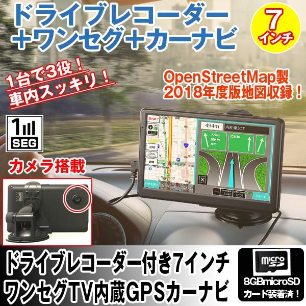 ドライブレコーダー付き7インチ ワンセグtv内蔵gpsカーナビ 3年地図更新無料2019年度版
